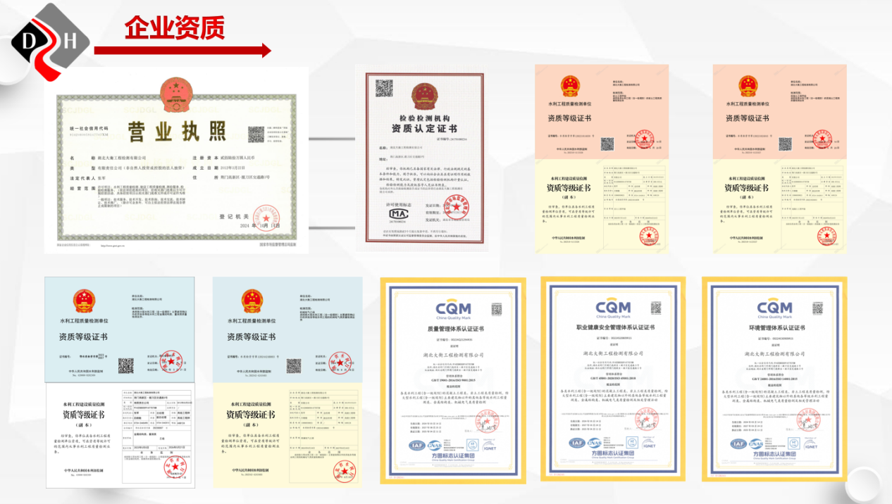 大衡公司持有湖北省市場(chǎng)監(jiān)督管理局評(píng)審中心頒發(fā)的CMA計(jì)量認(rèn)證證書(共340項(xiàng)參數(shù)),具有水利工程檢測(cè)資質(zhì)巖土、混凝土甲級(jí);量測(cè)、金屬結(jié)構(gòu)和機(jī)械電氣類乙級(jí)。業(yè)務(wù)范圍涵蓋水庫除險(xiǎn)加固、灌區(qū)續(xù)建配套與節(jié)水改造、泵站更新改造、堤防工程、河道治理、農(nóng)村安全飲水、土地復(fù)核等多個(gè)領(lǐng)域,連續(xù)四年承擔(dān)湖北省水利廳水利工程飛檢任務(wù),以誠信經(jīng)營與專業(yè)服務(wù)樹立行業(yè)口碑。