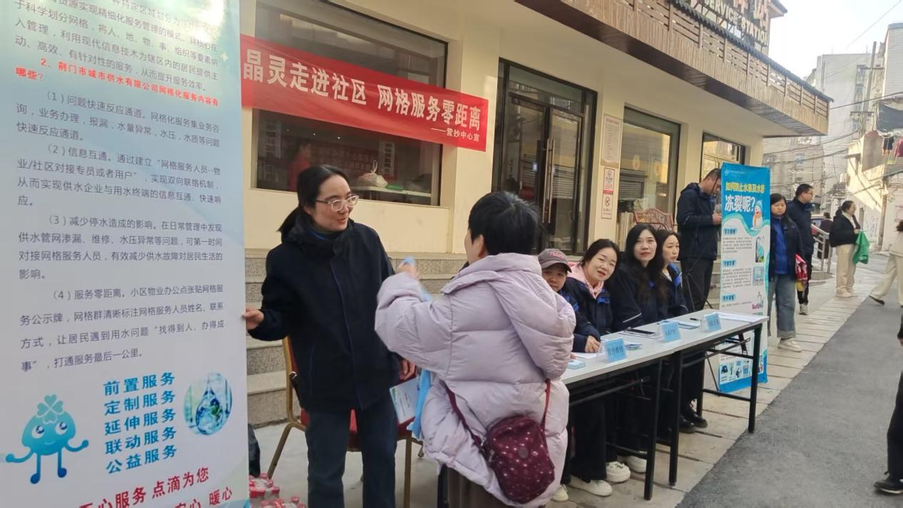 11月26日,荊門水務集團在塔影社區(qū)開展“水晶靈·網(wǎng)格服務零距離”主題活動,圍繞“水晶靈”服務品牌推廣、網(wǎng)格化服務介紹及供水設施防凍保暖等核心內容,為居民送上全方位的用水服務。