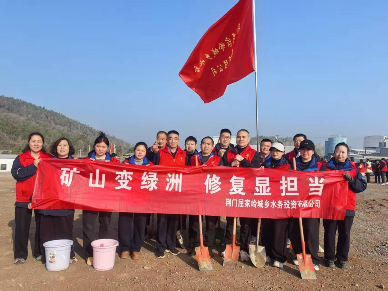 屈家?guī)X水投公司14名干部職工們分工協(xié)作,揮鍬鏟土、扶苗填坑、提水澆灌,每一個環(huán)節(jié)都一絲不茍,干勁十足,現(xiàn)場一片熱火朝天的景象。經過大家的共同努力,一株株新栽種的樹苗在春風中昂然挺立,為昔日礦山披上了嶄新的綠裝,為初春的屈家?guī)X增添了勃勃生機。
